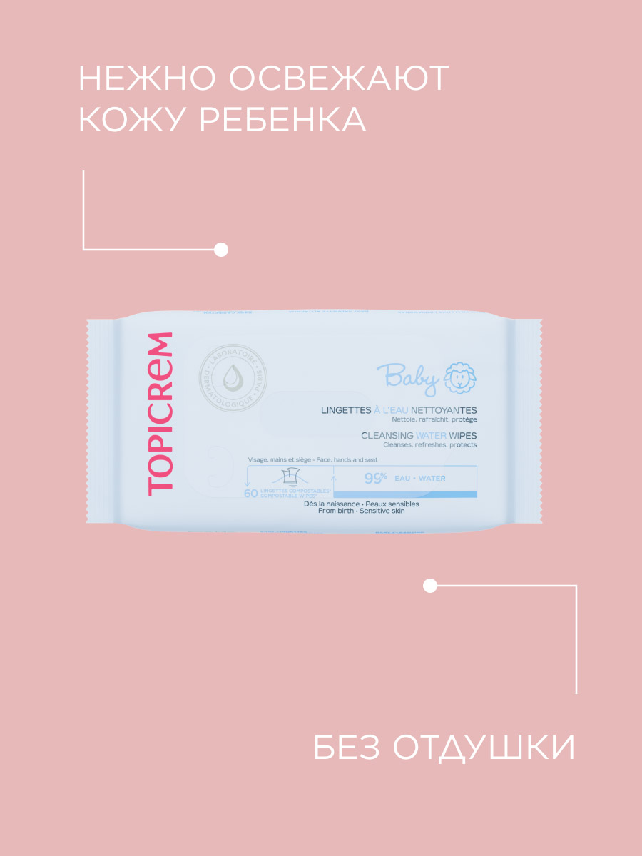 Салфетки на водной основе без запаха мягко очищают кожу младенцев, обеспечивая деликатный уход.